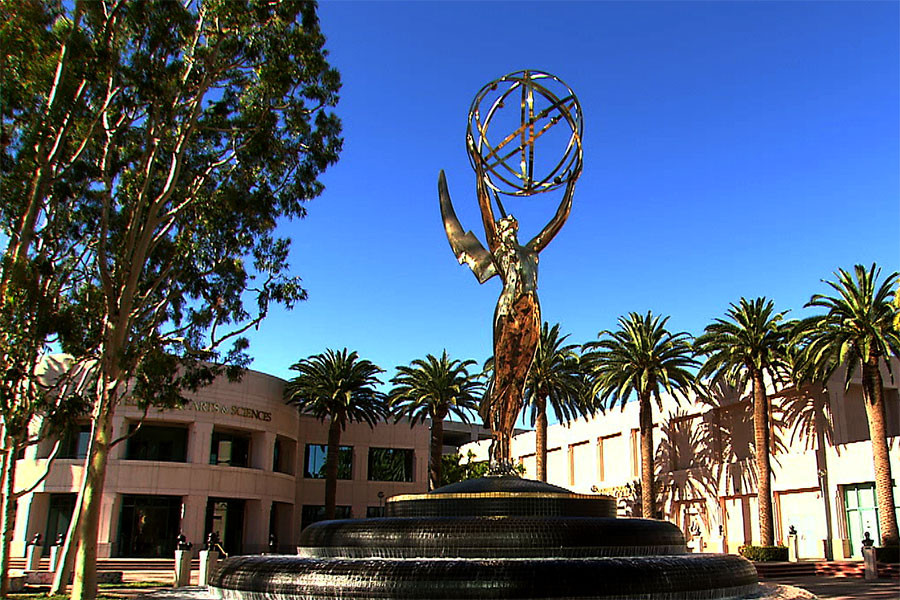 In May of 1991, the Television Academy moved into its new headquarters at the corner of Lankershim and Magnolia Boulevards, replete with an enormous fountain dominated by a 27-foot Emmy Award statue. The statue and Hall of Fame Plaza were conceived and overseen by production designer Jan Scott, winner of 11 Primetime Emmy awards—more than any other woman in the history of television.